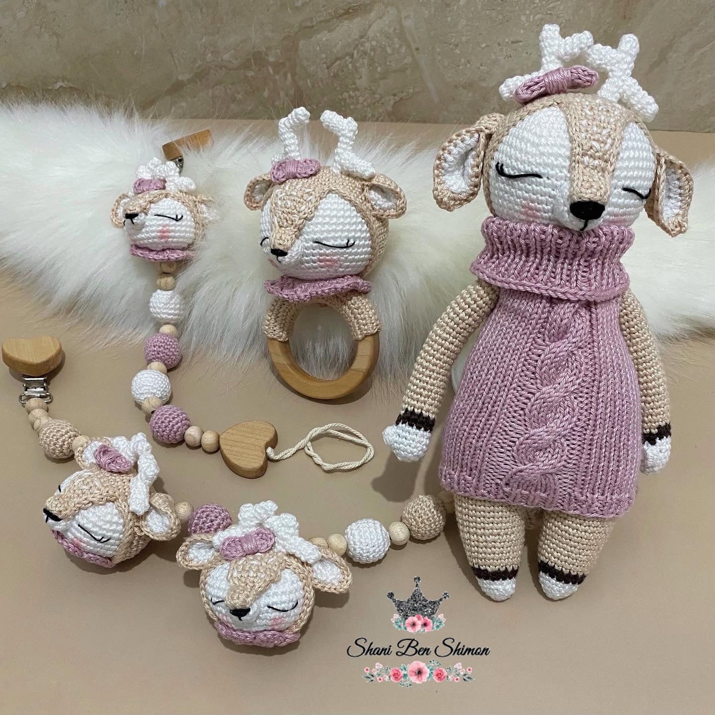 *בובת איילה עשויה מחוטי סריגה מאה אחוז כותנה