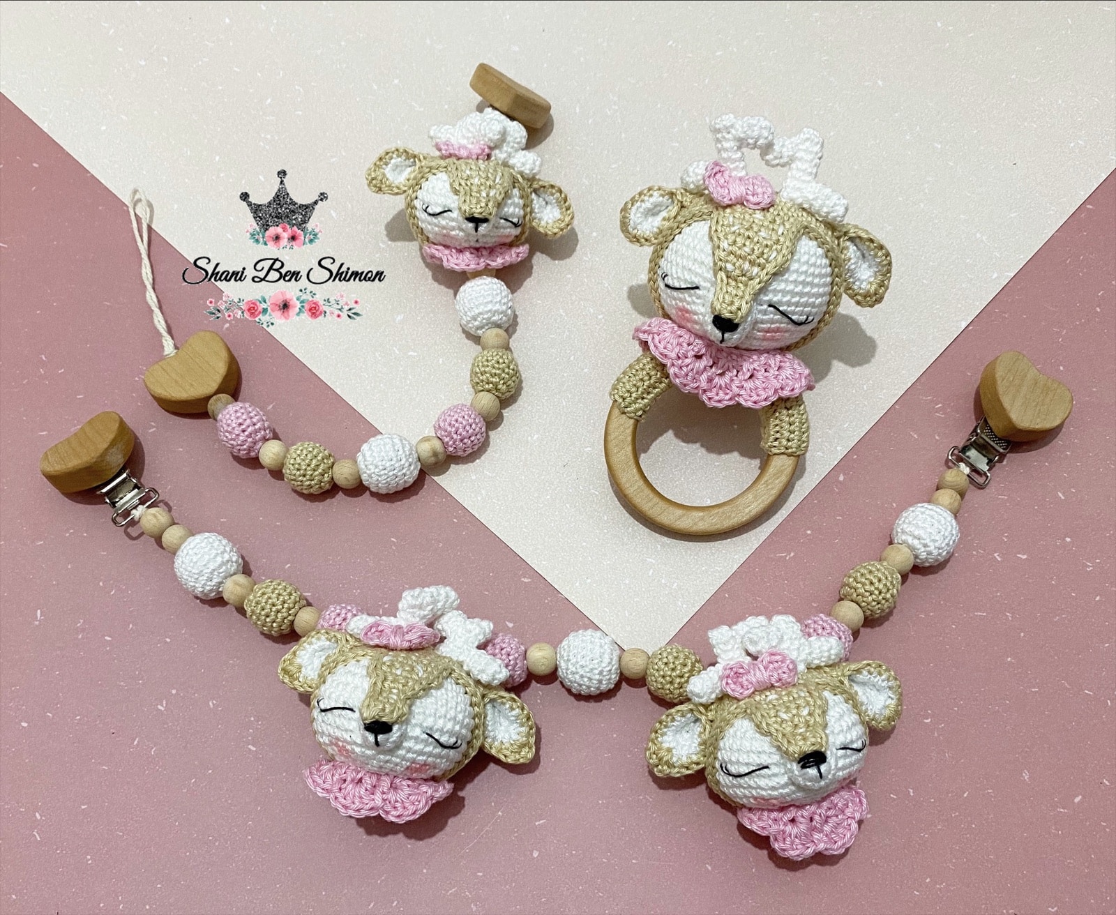 *תופסן למוצץ עשוי מחוטי סריגה מאה אחוז כותנה אורגנית