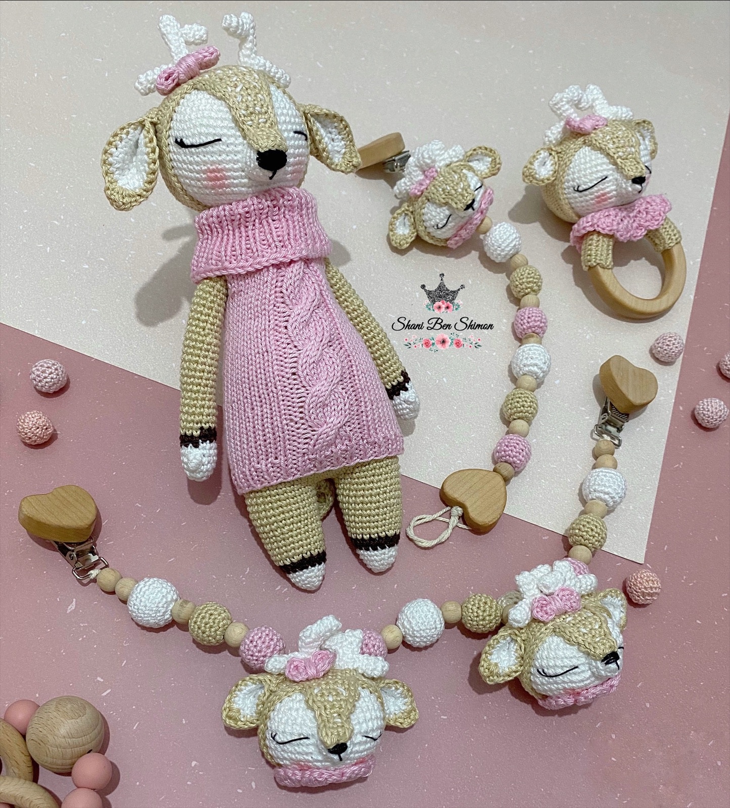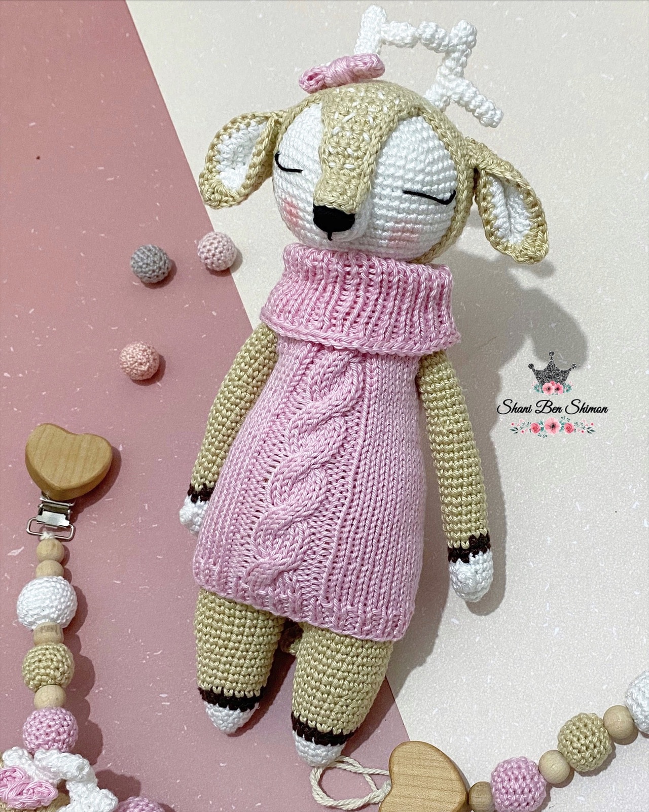 *בובת איילה עשויה מחוטי סריגה מאה אחוז כותנה