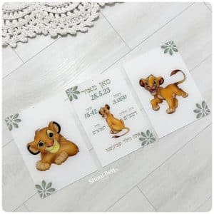 סט 3 תמונות תעודת לידה דגם ה-מלך מבריק
