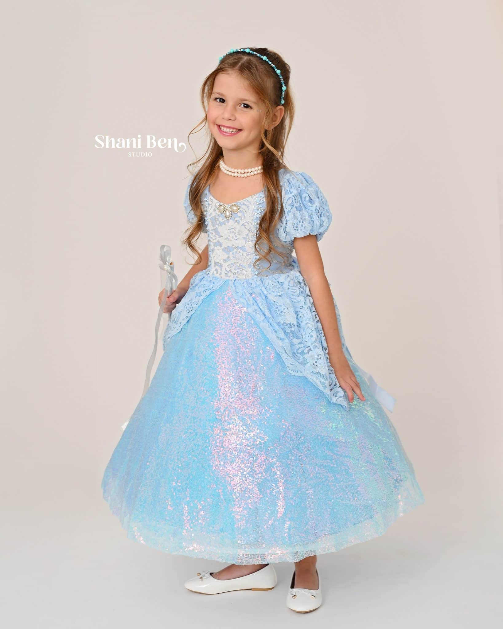 שמלה מפוארת ומנצנצת עם שיבוץ אבנים ותחרה